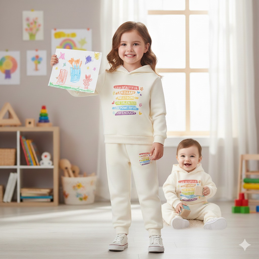 আপনার ছোট্ট সোনামণিকে দিন ভালোবাসা প্রকাশের স্টাইলিশ সুযোগ! এই সুন্দর হুডি সেটটি তৈরি করা হয়েছে নরম ও বাতাস চলাচলযোগ্য কটন ফ্লিস কাপড়ে, যা সারাদিন ধরে শিশুকে রাখবে উষ্ণ, আরামদায়ক ও হাসিখুশি।